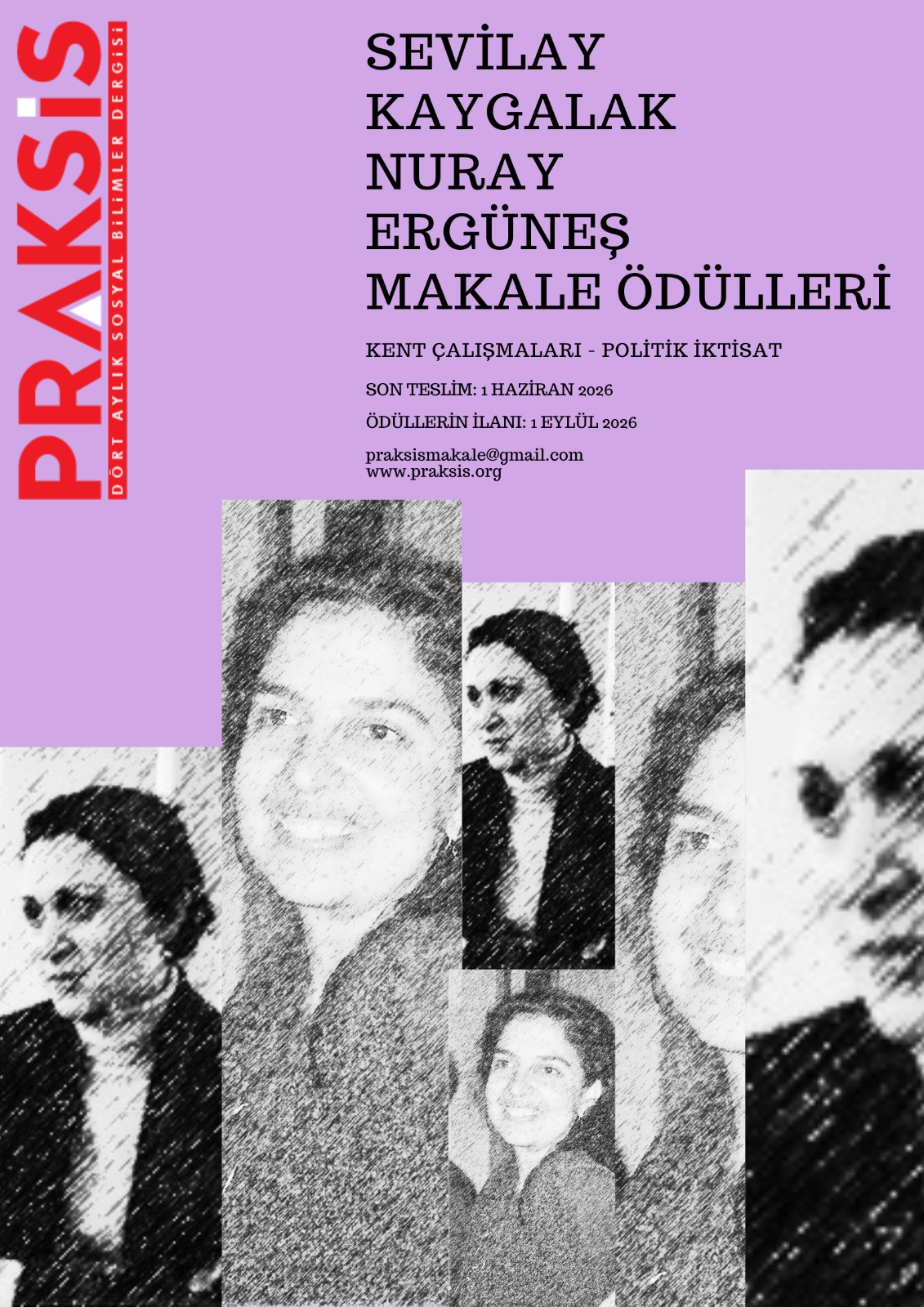 Praksis olarak yola çıktığımızdan bu yana iki değerli yayın kurulu üyemiz, dostumuz, yoldaşımız aramızdan ayrıldı. 3 Kasım 2007’de sevgili Sevilay Kaygalak’ı ve 13 Şubat 2018’de sevgili Nuray Ergüneş’i vakitsizce kaybettik. Arkadaşlarımızın sosyal bilimlerin farklı alanlarında yaptıkları özgün çalışmalar birçok araştırmacı, akademisyen, sosyalist ve feminist için hem ilham hem de ışık kaynağı olmaya devam ediyor. Onlardan kalan bu değerli mirasın yaşaması ve paylaşılmasına katkıda bulunmak amacıyla 2020 ve 2024 yıllarında sosyal bilimlerin iki alanında makale ödülleri verdik. Dergimizin yola çıkışının 25. yılına da denk gelen 2026’da, kaybettiğimiz sevgili arkadaşlarımızın anısına üçüncü kez makale ödülü çağrısına çıkıyoruz.